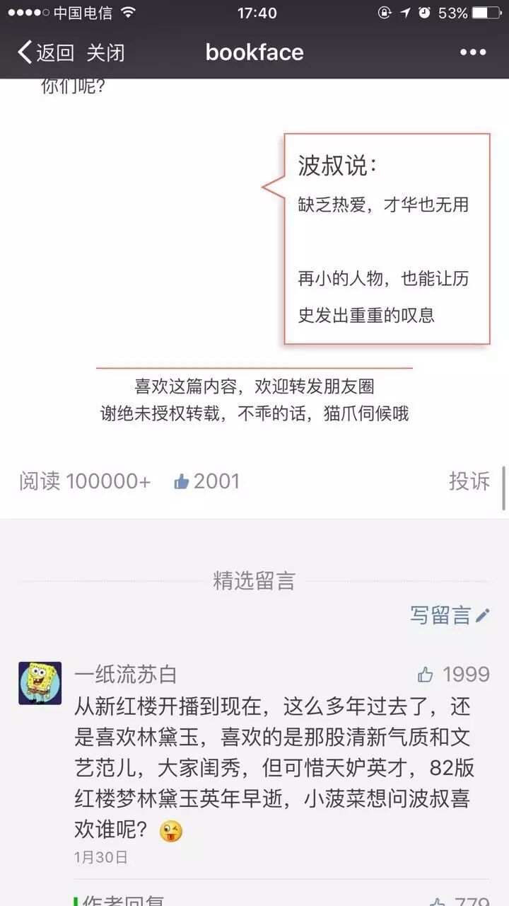 “bookface”通常文章署名都是“波叔”。最早因为同事善于主动和用户交流互动,写作风格也有自己鲜明特点,于是,成功塑造了一个可爱的“波叔”形象,而粉丝们则被称为“菠菜”。