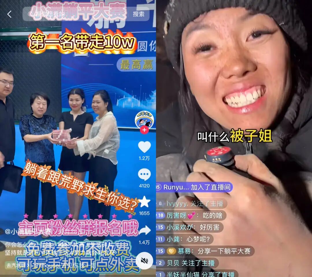 “冷美人”还参加过“武汉躺平大赛”等挑战节目,算得上经验丰富、镜头感强的“待爆素人”。在没退赛时,她就已经拿到了骆驼的商务合作,退赛后两天内涨粉超7万,可谓是退赛即出道。
