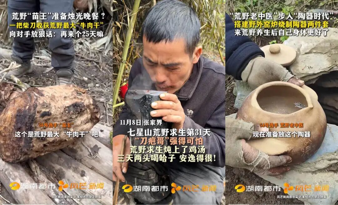 这一赛事直播,目前已经持续了40天,#七星山荒野求生挑战赛 等相关话题在抖音引起了超48亿次围观,且直播仍在进行中。