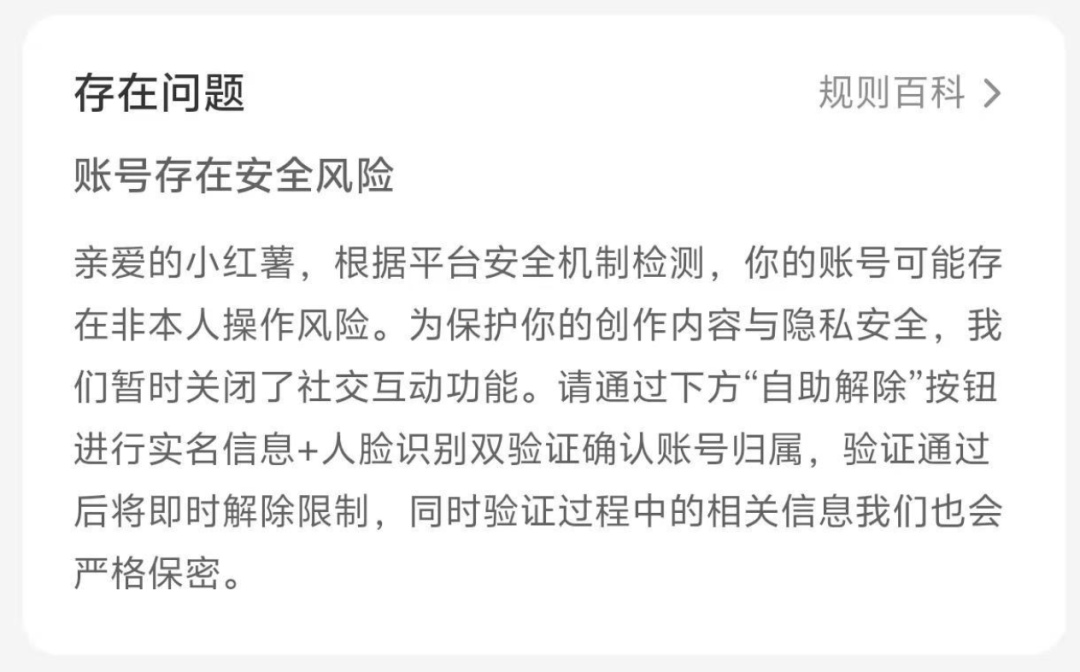 “为什么我的小红书账号突然无法登录,要刷脸认证了?”