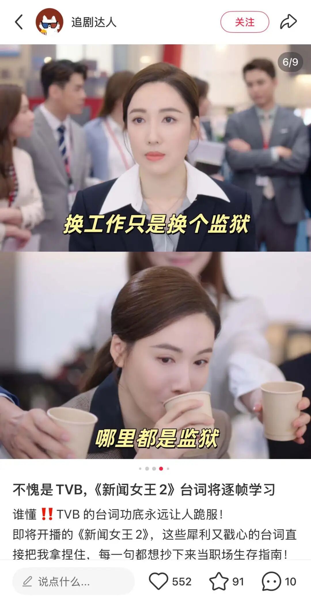 比如近期热播的职场剧《新闻女王2》中,出现了不少在互联网上广为流传的金句,像是“换工作只是换个监狱,哪里都是监狱没区别”、“社会大学第一课,这个世界上没有好人”等。