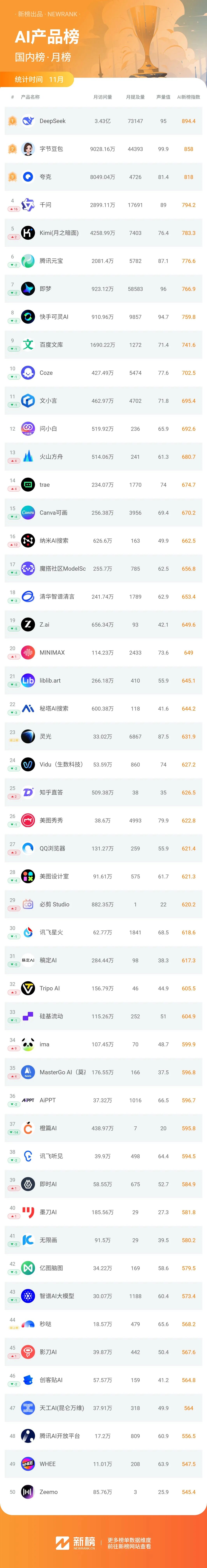 与ChatGPT争夺全球用户,千问总榜排名蹿升76位;4天下载过百万,灵光强势上榜 | AI产品月榜