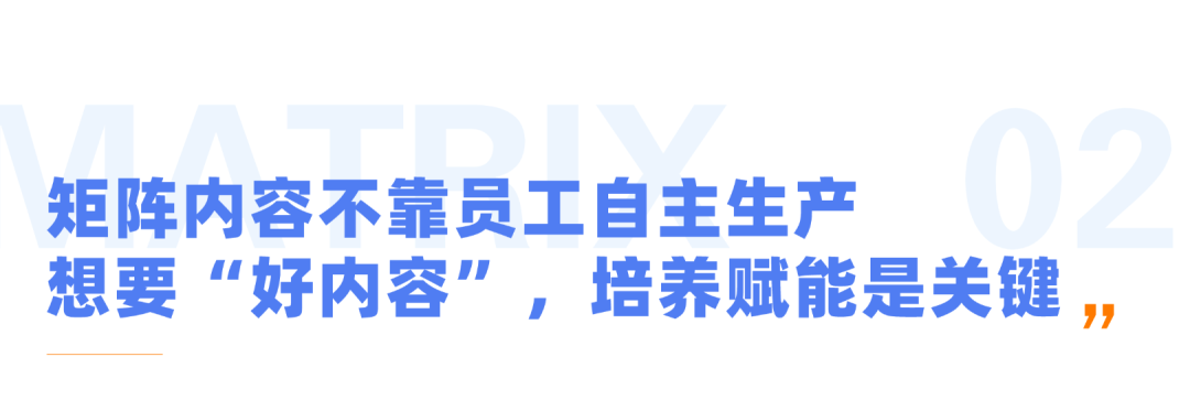 新榜矩阵通客户中已有企业陆续这样做,给员工提供完整的从入门到进阶的培养体系,包含爆款方法论、转化策略、IP打造等,帮助员工提升自身内容能力;同时系统评估产出内容质量,将优质案例转化为方法模板赋能全员,,并对优质作品给予奖励,激发创作热情。