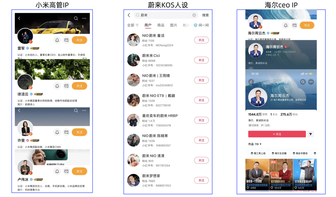 近年互联网领域,从车圈流量担当的小米高管IP矩阵号、在小红书实现种草突破的蔚来KOS人设体系,到去年“意外”走红且成功提升品牌影响力的个人IP海尔ceo周云杰,不难发现有人设、“活人感”的账号,更得用户青睐。