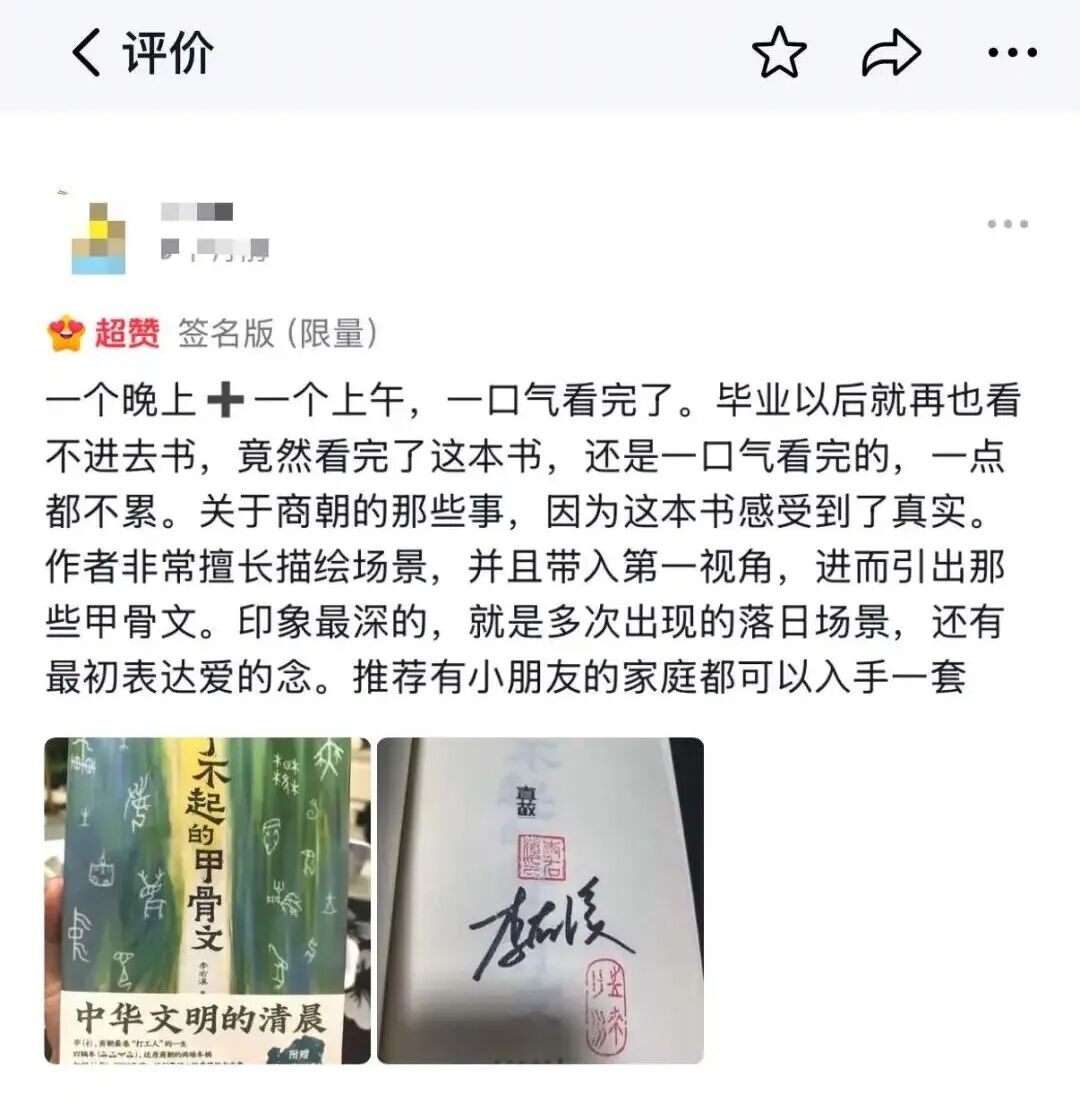 一条条满含温度与共鸣的评论,不只是对这本书的肯定,还是对“李右溪”深耕甲骨文科普的认可,这份肯定也让她有信念继续挖掘更多甲骨文里藏着的华夏故事,在古老文字与当代读者之间,搭建起一座更宽阔的沟通桥梁。