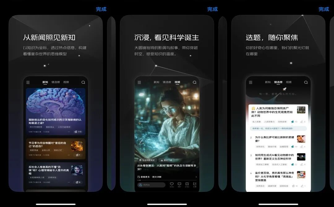 为拓宽选题来源,他们还面向粉丝开发了一款名为“大圆镜”的App,目前日活跃用户数(DAU)稳定在2500左右。大圆镜App旨在提供优质、前沿的科普文章,与侧重于“科学史”的视频账号形成互补关系。
