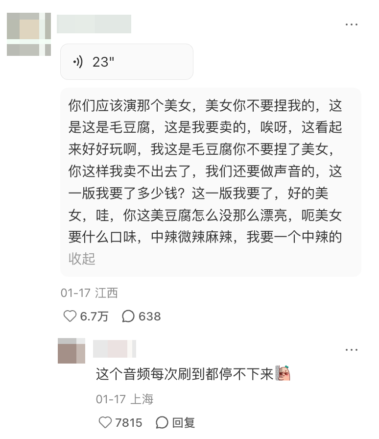 现如今,几乎每个卖霉豆腐视频评论区,都会有网友代替摊主,行云流水般展开一整套经典剧本。