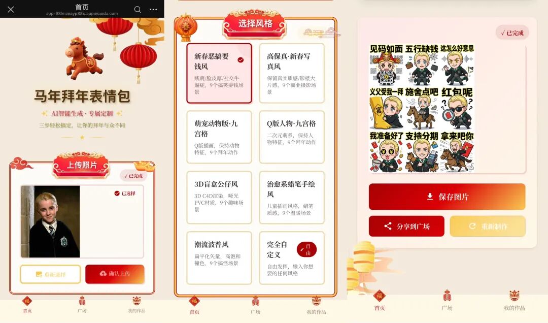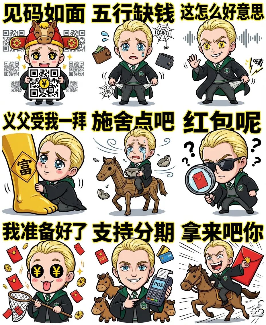 在这里,创作者们的脑洞显然收不住了。从寻找专属的“马年本命”,到制霸群聊的表情包生成器,再到马尔福变身马年吉祥物,各种新花样被批量产出。