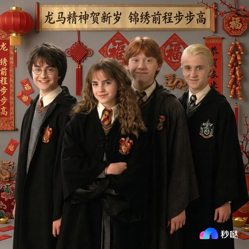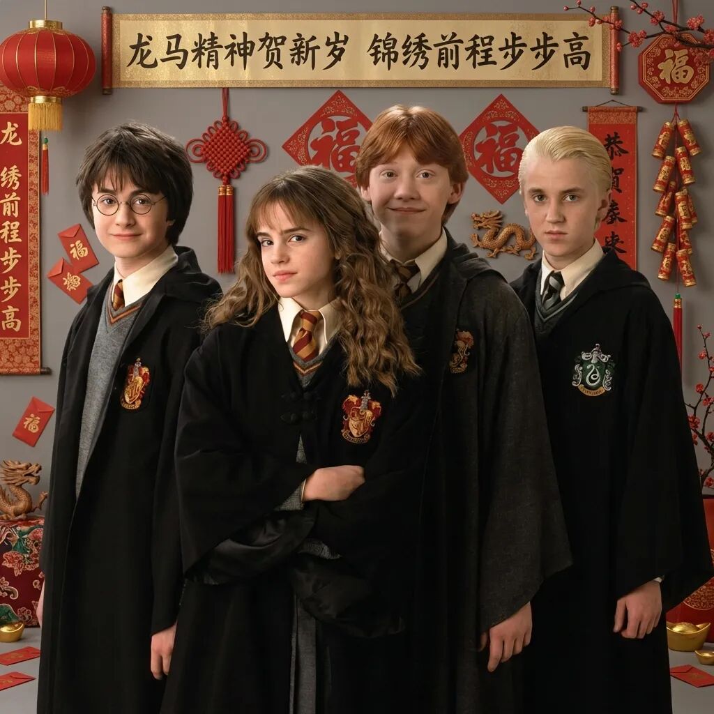在这个讲究“团圆”的节日里,没有什么比一张整整齐齐的全家福更重要的了。我决定先在平行时空里组一场特殊的“局”,比如来一场霍格沃茨新春返校局。