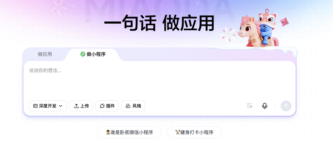但如果你希望它看起来更正式、体验更流畅,只需要在首页创建时选择“小程序”模式,再输入相应需求。