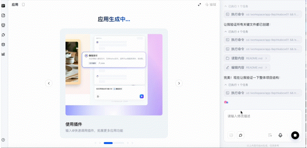 检查完所有需求,点击生成应用,大概几分钟后,专属应用就诞生了。