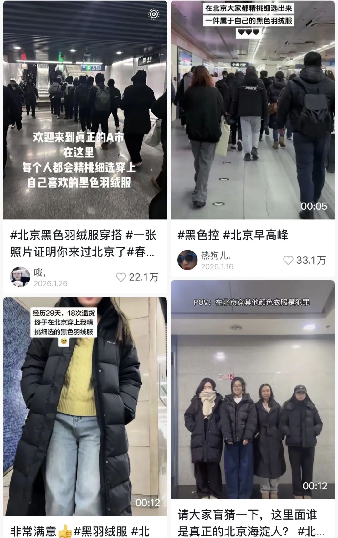 这是本场羽绒服选美大赛的主题,也是对北京冬日街头的精准概括。在一些网友心中,黑羽绒服几乎是“北京市服”般的存在。