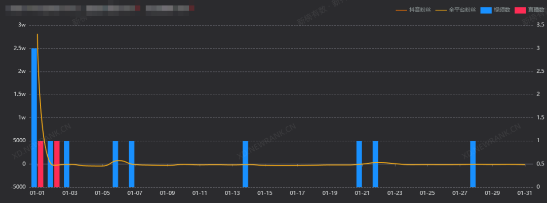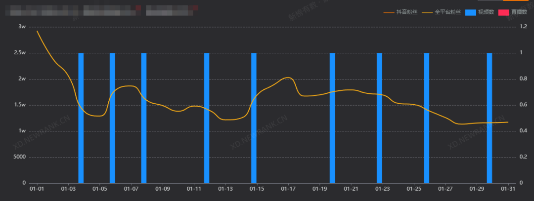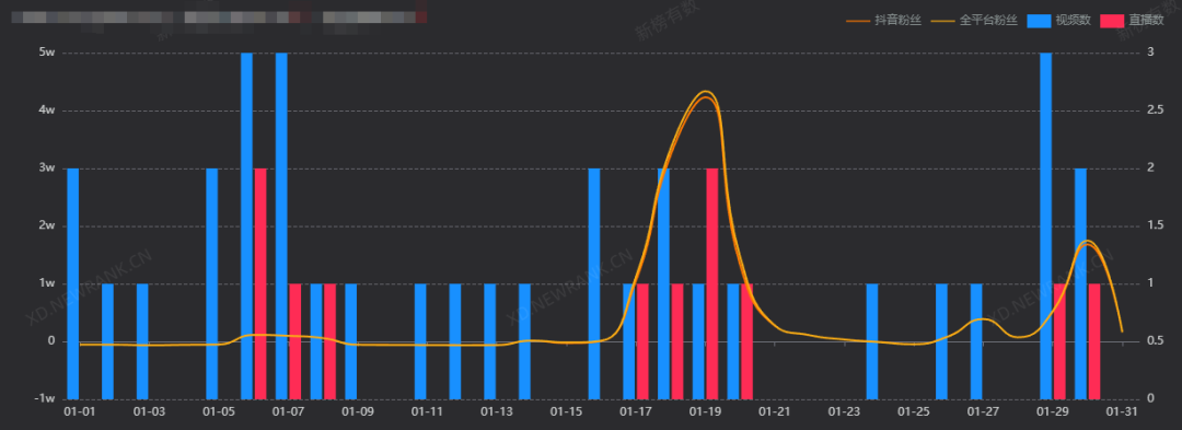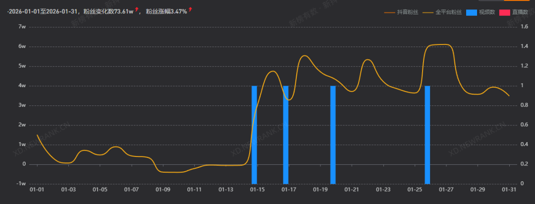 从粉丝数变化情况来看,主要增长发生在1月15日之后,受内容发布及长尾传播影响,为账号带来显著的粉丝增长。