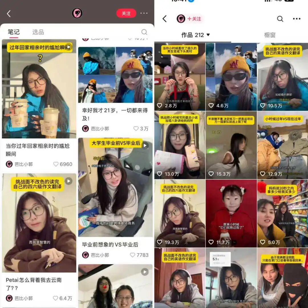 如此离谱搞笑的内容,也让“芭比小郭”找到流量密码,迅速涨粉。