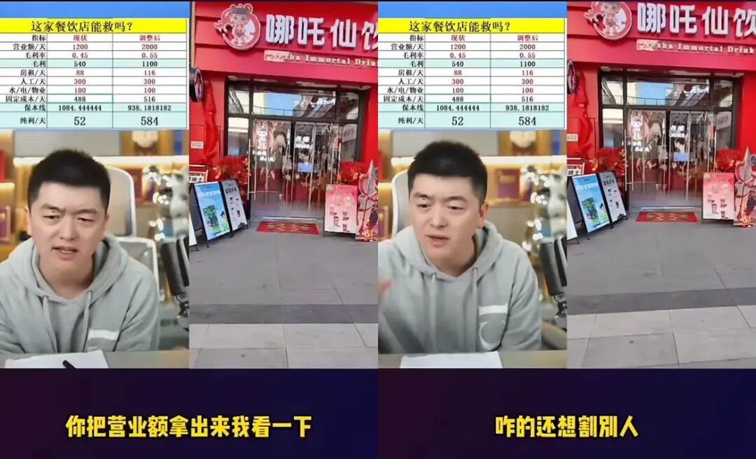 2025年底,“哪吒仙饮”一家分店的店长试图通过谎报营业额,给当了“冤大头”已经亏本的自己找个接盘“冤二头”,结果被“勇哥”当场戳穿,让他别再割别人,赶紧闭店止损。