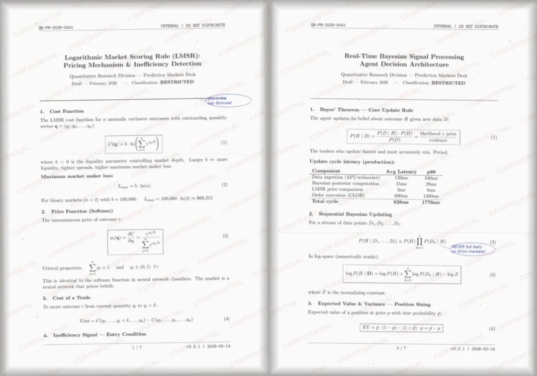 还有一位海外网友分享了一个极具戏剧性的案例:他的一位刚从量化基金离职的朋友,给了他两页写满核心交易公式的文件,并声称依靠这些公式在Polymarket上每年能赚40万美元。