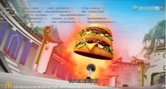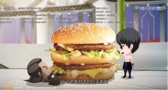 此外,麦当劳不久前联合热门动画《斗破苍穹》,以小剧场的模式进行中插广告,萌化的主角形象和巨无霸汉堡的结合,画风相当可爱,又符合麦当劳“能量加油站”的定位。