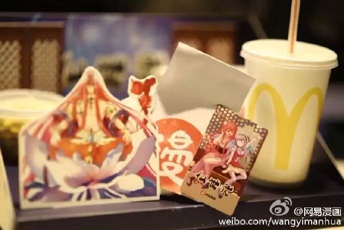 比如麦当劳曾与网易漫画合作,推出“艾木娘の不思议之旅”的原创漫画(“艾木娘”取自M谐音,是网易漫画为麦当劳点餐机独家定制的二次元形象),并由此推出点餐机购买的二次元套餐,将线上虚拟二次元形象与线下销售场景相桥接。在微博,话题#艾木娘的不思议之旅#的阅读量达1244万。