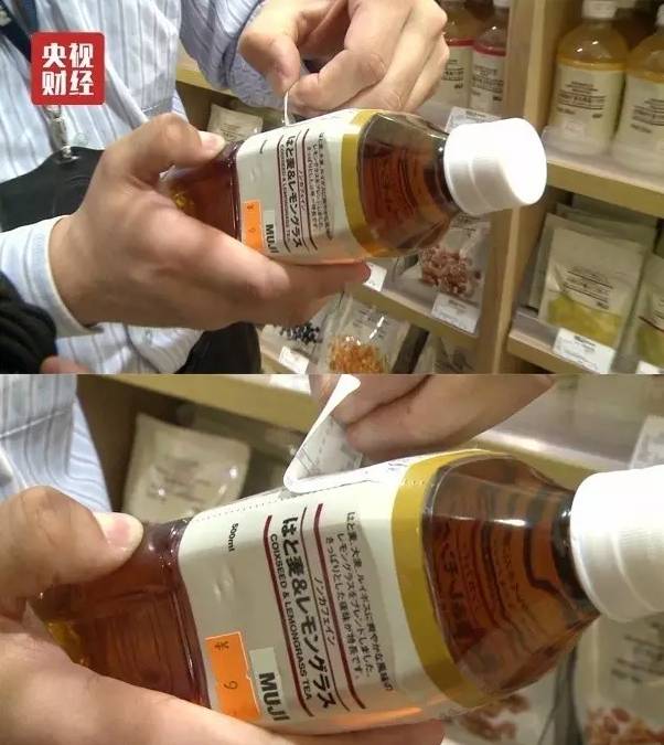 在无印良品超市,一些日本食品的外包装上被贴上了产地为日本的中文标签,但是当揭开中文标签后,露出了这些产品的真实产地为东京都,名列禁止进口名单。