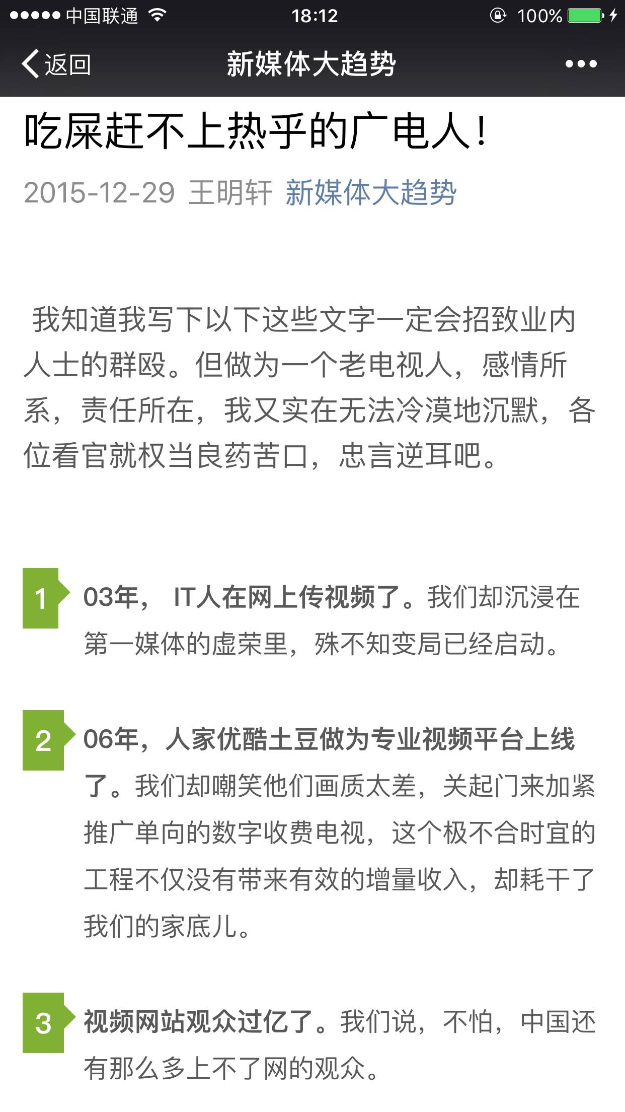 目前,业界普遍认为有原创能力的优质自媒体,很多背后都站着传统媒体人操刀的身影。2017年,内容创业进入洗牌战场,很多营销号段子号也开始转型升级做原创内容。优质内容哪里来?会创作的人才从哪里来?追根溯源,基础还是传统媒体那套经历了时间洗刷和考验的人才培养和内容制作模式;不同的是,环境和市场剧变,要求更快更高效作出反应。
