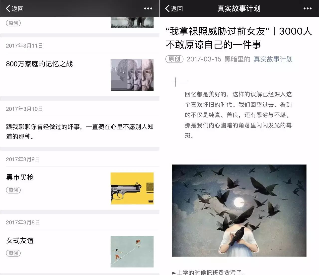 “我们并没有这里说的日更压力,因为每天都能收到几十封稿件,从数量上来说完全没有压力。”公众号“真实故事计划”的相关负责人告诉新榜。