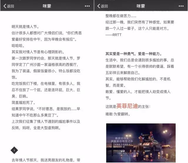 据透露,除了以往最常见的软文广告模式,咪蒙的公众号投放目前又延伸出了一些新形式。