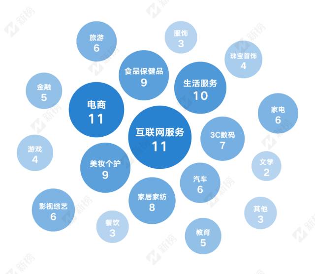 投放咪蒙的广告主品类很广,其中占比最大的三个品类为互联网服务、生活服务和电商,其次是美妆个护、食品保健品和家居家纺。