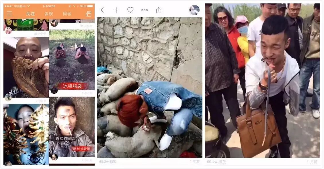 吃灯泡、蠕虫、玻璃;生吃死猪、蛇、蛆;放鞭炮炸裤裆、跳冰河……打开它后你会看到一个个自虐视频、低俗黄段子及各种行为怪异之人,“其中充满了残酷而荒诞的场景,令人不适,隐约看到了我们这个光鲜时代的暗面”。