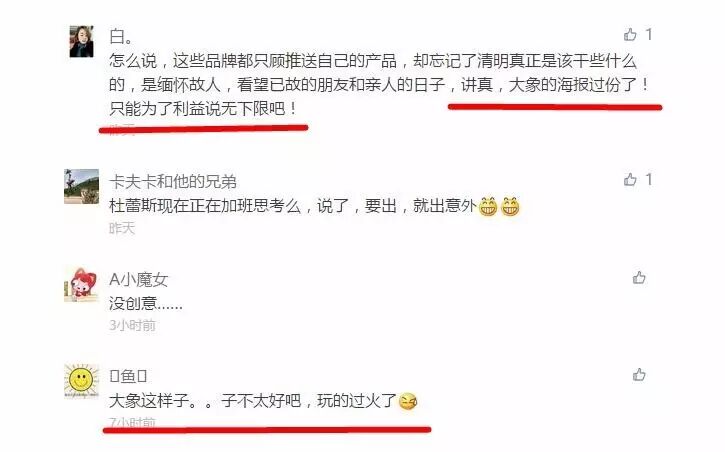 成功的品牌营销一定要找到和消费者情感的共鸣点和G点,但这些清明节的借势营销并没和消费者发生强情感联系,因而消费者也不大可能为品牌营销自发传播,形成“自来水”效应。