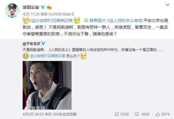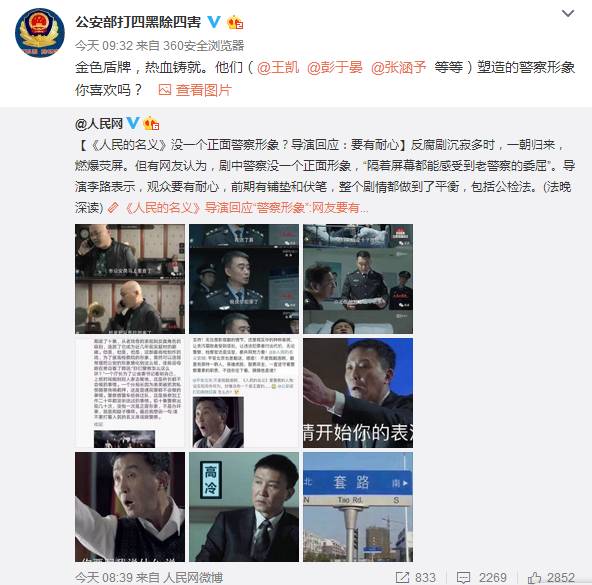 在微博上,微博话题#人民的名义#阅读量达7.6亿,被网友称为“全剧最黑”的公安官微,也“强忍泪水”出来说话了。