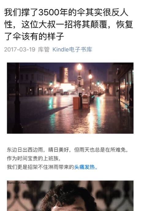 Tim说,“Kindle电子书库”第一次和推物合作卖反向伞就获得巨大成功,阅读量10w+,销售量远超预期。