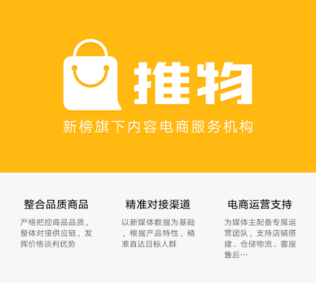 推物作为新榜旗下的内容电商服务机构,目前仍在加速优化迭代中。它期待着跟你携手合作,也欢迎你提出宝贵建议,一起把用户服务好,一起把内容电商做大!