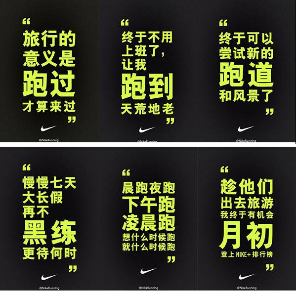 阿迪达斯和耐克同为营销老手,当然不会错失社会媒体这一战场,但要说谁更玩得转,就不得不提耐克官方微博在2012年伦敦奥运会期间紧随着比赛而发布的一组海报。