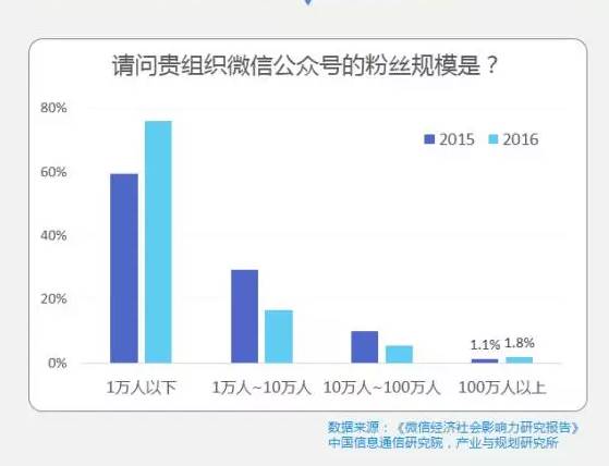 一、百万粉丝公众号占比1.8%,粉丝数不过万的活跃公众号占比为76.1%;