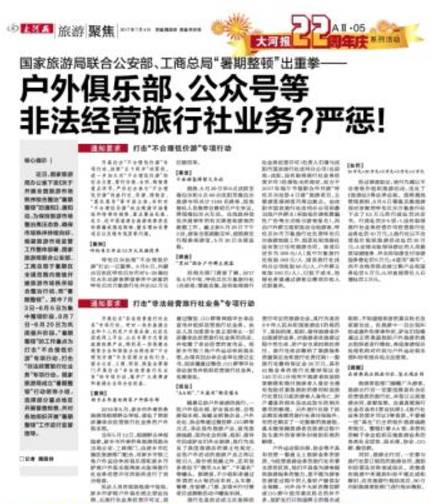 据大河报 近日,国家旅游局办公室下发《关于开展全国旅游市场秩序综合整治“暑期整顿”的通知》,在全国范围内继续开展旅游市场秩序综合整治行动。