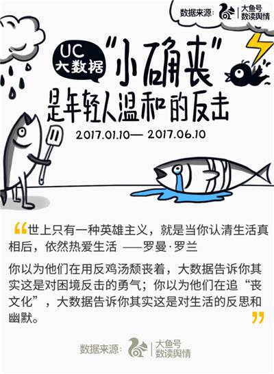 但在UC大数据发布的丧文化报告《“小确丧”是年轻人温和的反击》中,我体会到这个词背后的文化。报告中有一句话,“世上只有一种英雄主义,就是当你认清生活真相后,依然热爱生活。”