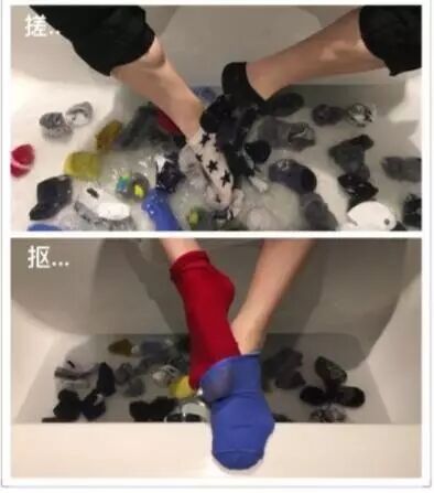 同样是大开大合的脑回路,谦谦先从描写老爸洗袜子洗到发火,转到自己独创了“脚洗袜子法”(原谅榜妹以前只听说过暗黑料理,这才知道还有暗黑袜子),再从“解放上半身”转到脚上起泡,助理买来创可贴——生活真美好,当然要卖广告!