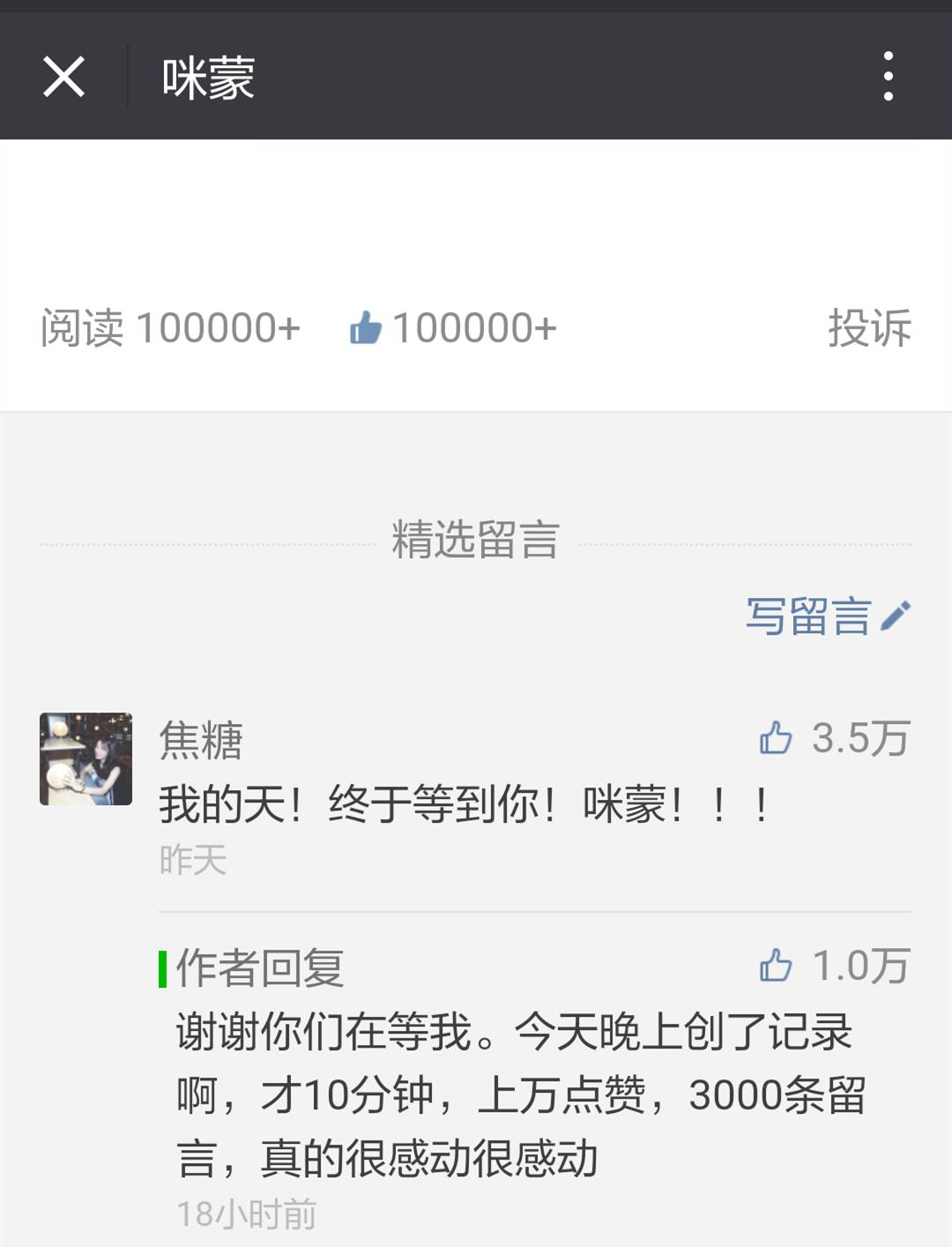 昨天深夜,被禁言30天的咪蒙终于归来,瞬间掀起朋友圈的一场“地震”。这也意味着微信公众号最贵广告位又回来了。