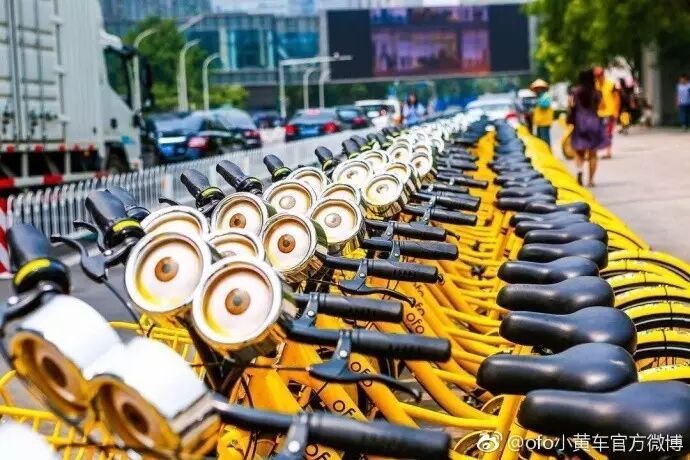 从上周五开始,由ofo和小黄人共同打造的ofo大眼车激萌上路。这款车不仅长出了一对大眼睛,还在车轮和车身上融入了小黄人形象。