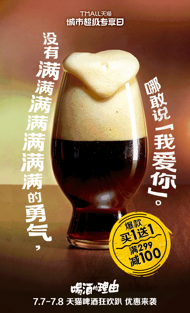 之于我,读文案比品酒是一件更让人幸福的事儿。对于品牌主而言,怎么让消费者在众多酒品牌中选择你,就要看看你用什么样的文字去打动他。天猫超市啤酒狂欢日关于“9个喝酒的理由”的这一系列广告文案,让人感到非常走心