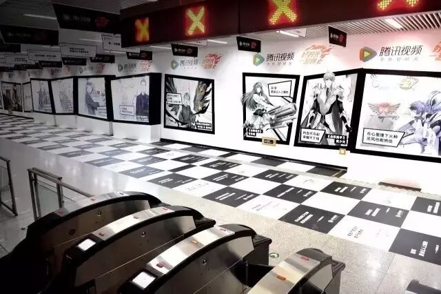 从7月10日起,腾讯视频将二次元动漫“燃”进了望京地铁站里,将《鬼吹灯之黄皮子坟》《明日之子》《逆袭之星途璀璨》《全职高手》中的二次元动漫形式创意呈现在了地铁站的天花板、包柱上,并联合青年KOL们一起为“燃”发声。诸如“世界之广阔,自然之瑰丽,生命之美好,一想到热烈拥抱生活和朋友我就燃到爆”的文案比比皆是。