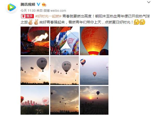 (今晨,腾讯视频#好时光一起燃#带着超燃热气球和太阳一起上天了。)