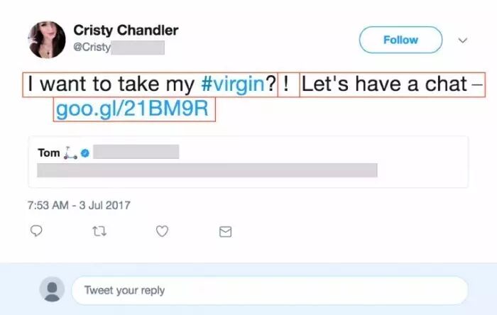 据报道,这些伪造的推特账号基本都使用诱人的女性图片做头像,在档案中也有诱导性的恶意链接,并且大部分恶意链接被指向成人约会网站或者色情服务。