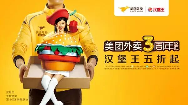 去年美团外卖三周年,邀请SNH48成员出演广告,造型为快递员手中的食物,并配有“美食邂逅小哥,撩味好戏上演”。有网友吐糟:“简直是性别歧视重灾区,女性在广告人眼里都是这样吗?!”