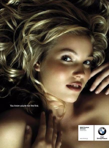 多年前引发争议的宝马二手车的广告,同样把女性比作二手车,配词为“你知道你不是第一个”。