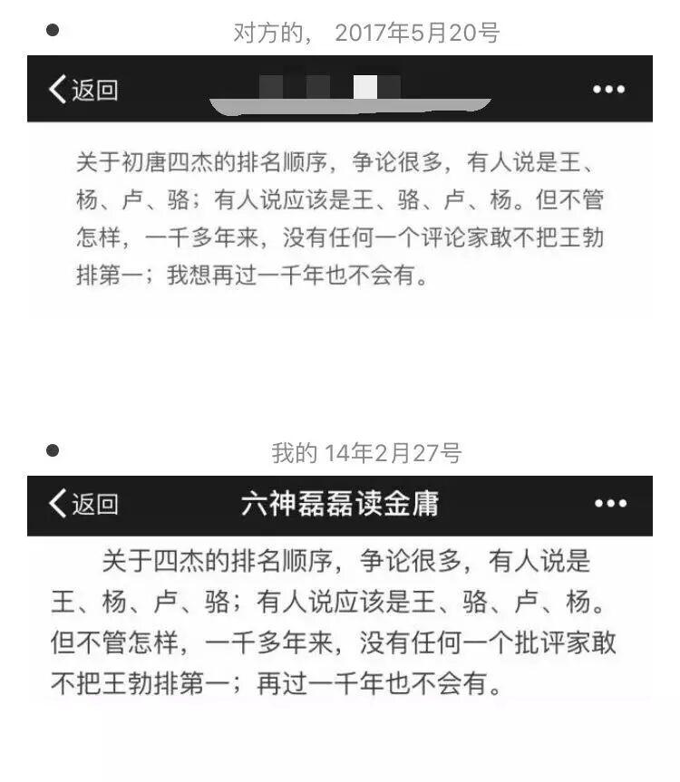 比如“六神磊磊谈金庸”在上周三发的推文《对不起,我又抄袭了》,就抨击了某个洗了他稿子的公众号