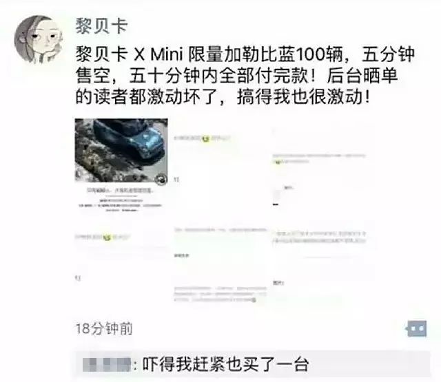 迅速售罄的根本在于MINI本身有大量拥趸,加上100台限量很稀缺。MINI和黎贝卡联合的成功则在于受众交集的成功。举个例子,如果MINI和“汽车之家”也有足够的受众交集,那这100台放到“汽车之家”去卖可能2分钟就售罄了。