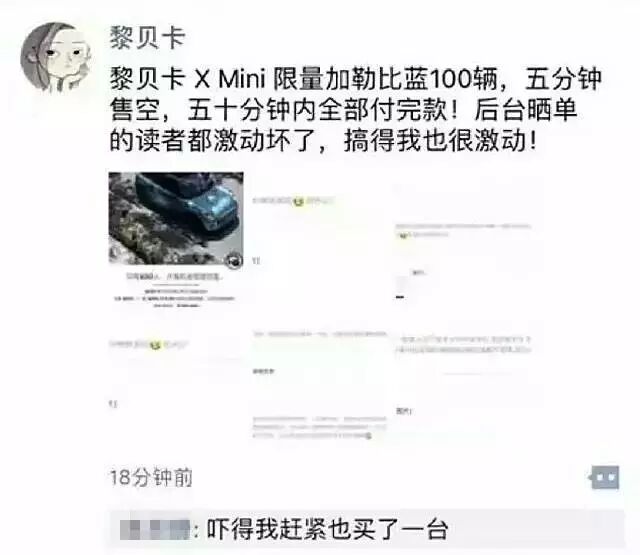 微信也能卖车?黎贝卡5分钟卖100台MINI