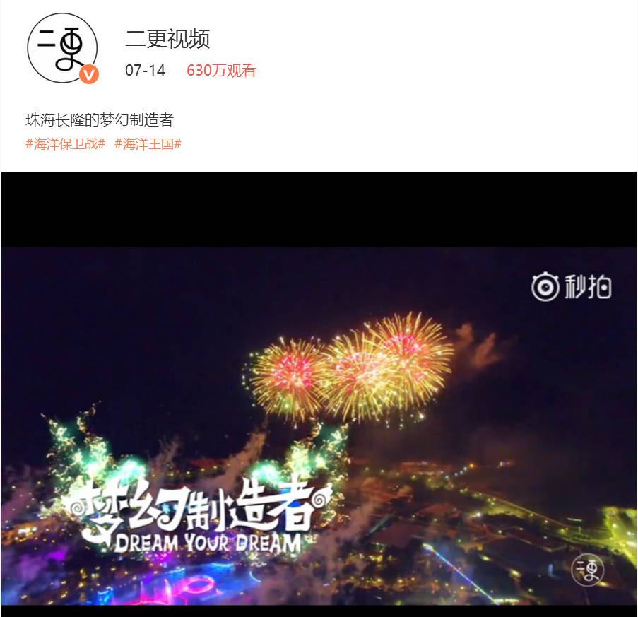 除了黎贝卡,还有众多影响力位列自媒体第一阵营的大咖,借助“N次方”计划为长隆量身定制了众多易于传播的好内容。比如火爆短视频领域的二更视频,就借助写实的手法,制作了四条关于珠海长隆海洋王国烟花秀背后的故事短视频,深度挖掘长隆的美景,直接影响二更视频近千万的受众。