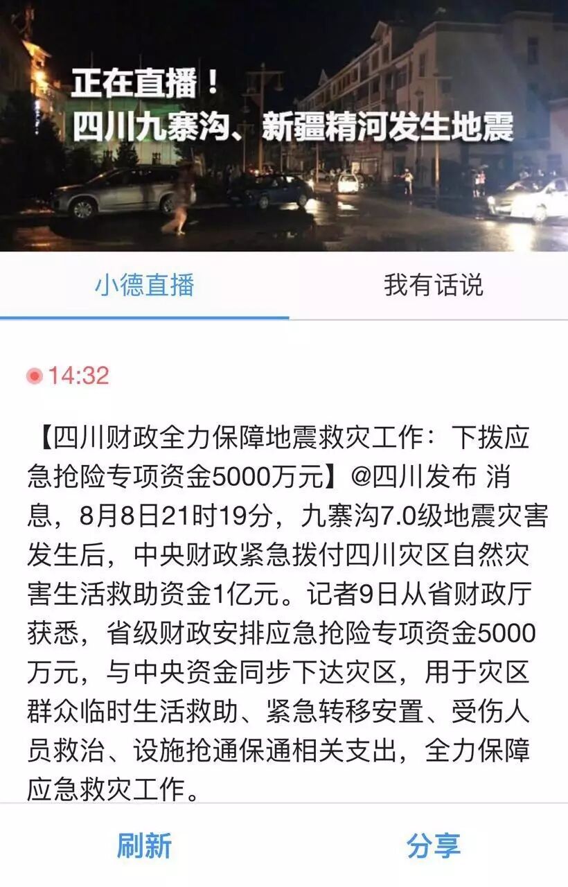 及时传递灾区信息,开启实时直播